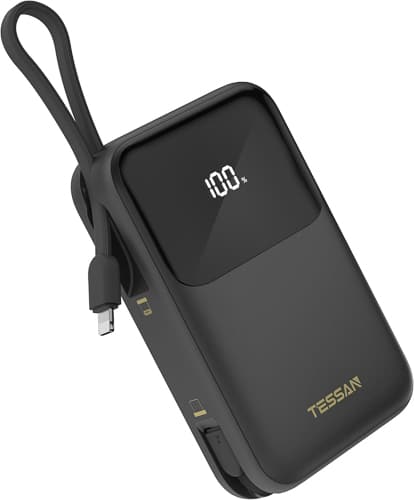 Again, there are multiple possibilities, but we like this Tessan 30-watt portable charger that has both a lightning (for iPhone 15 and older) and USB-C cable built in. There are also USB-A and USB-C ports if you need to charge more than one device at once. It's a bit heavy at 369 grams (13 oz), but we'll bear that weight for a quick charge when needed.
