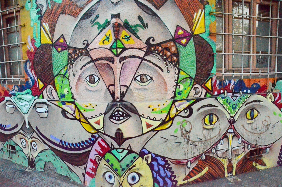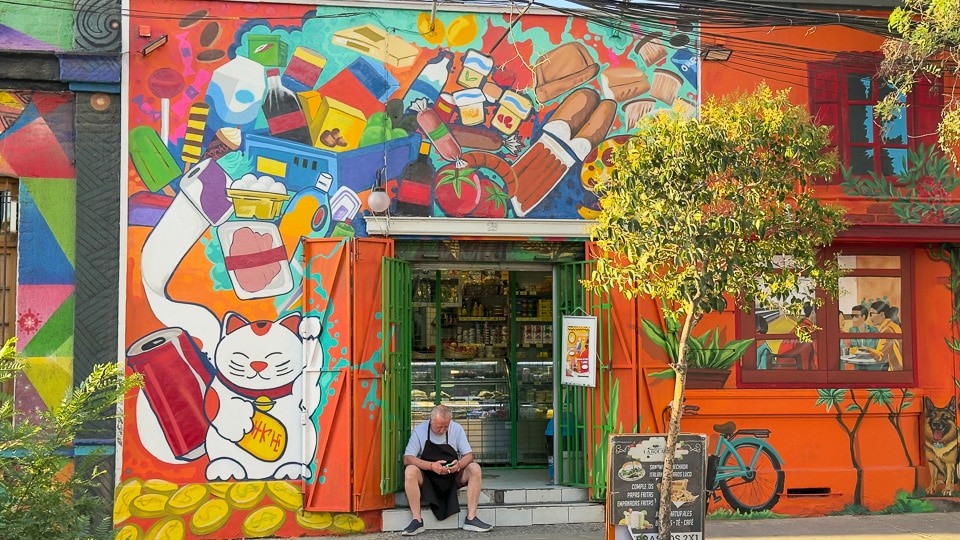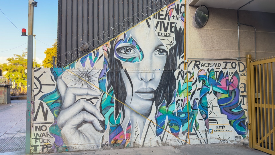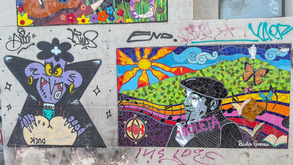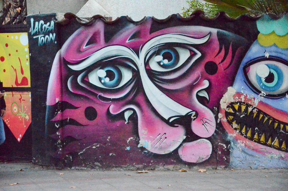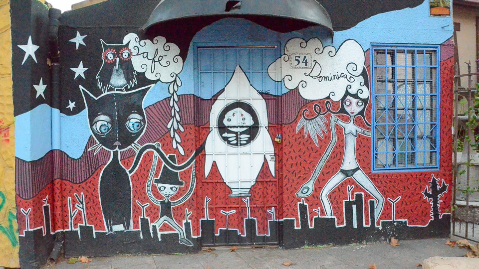 We just returned to one of our favorite cities, Santiago de Chile, where we spent four months in 2011. It was the first time we've been back to Santiago since then, and we were pleased to wander the Bellavista neighborhood where we'd lived and find that many of the shop and apartment walls were still covered with imaginative murals.